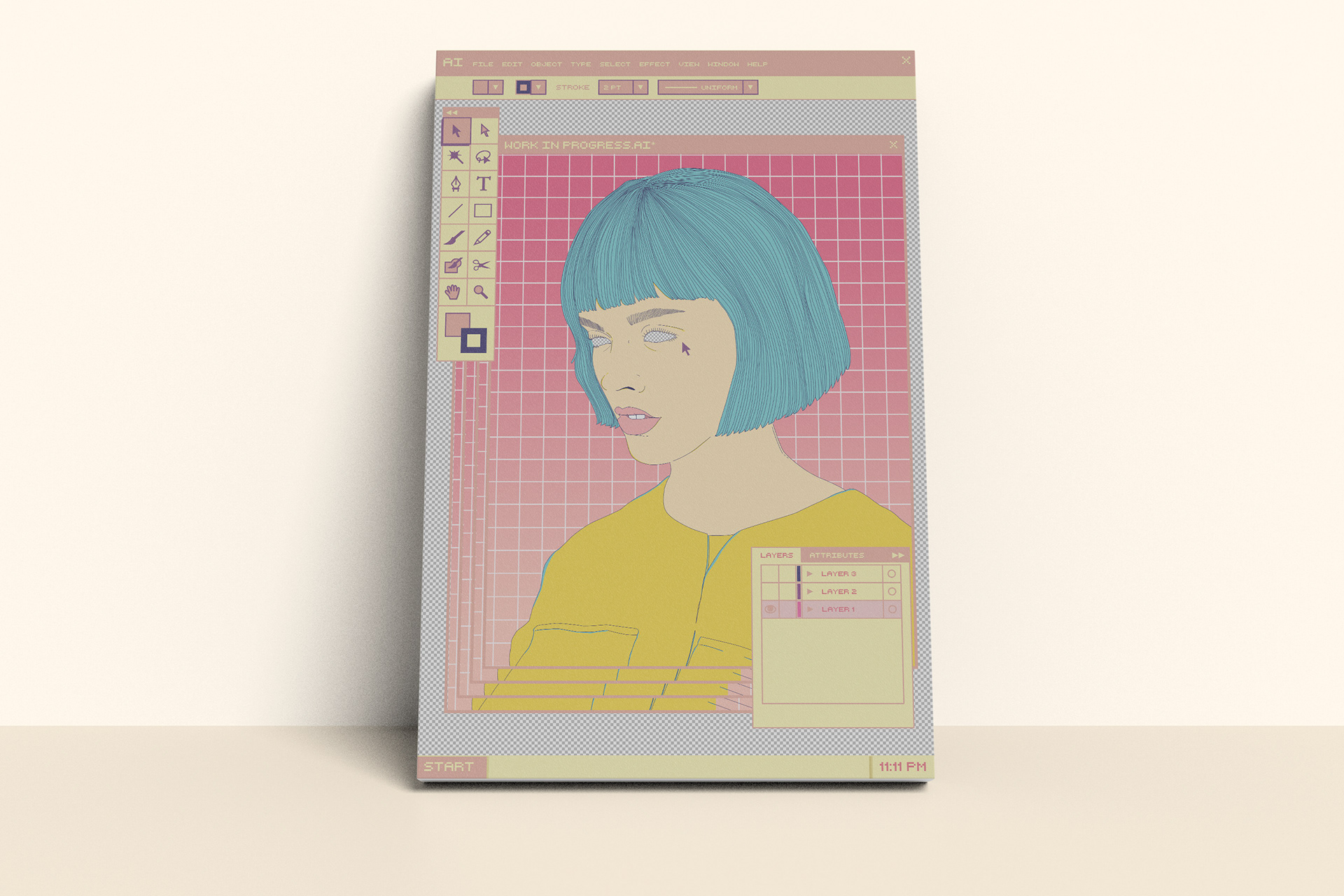 A digital illustration for a multimedia arts exhibit entitled, "Work in Progress".